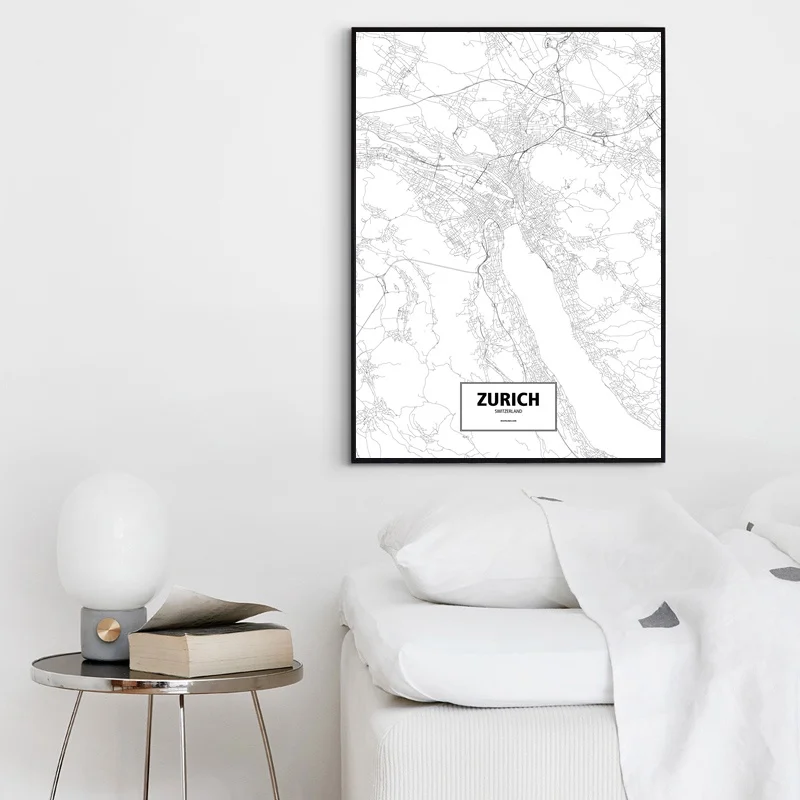 Zurich Switzerland Black White Custom World City Map Poster Canvas Print Nordic Style Wall Art Home Decor